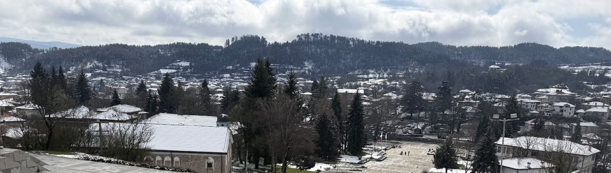 Още с пристигането си усещаш спокойствието на планинския град. Покривите са леко побелели, въздухът е свеж, а хоризонтът е очертан от меките линии на Балкана. Разходката може да започне от високата част над центъра - място, от което се открива широка гледка към града и площада, където следобед ще се съберат хората.